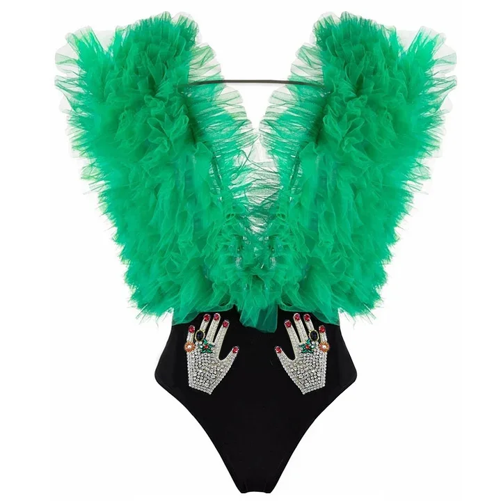 Body une pièce sexy à volants, imprimé floral, manches, décolleté en V profond, vêtements de plage, body amincissant, Monkini